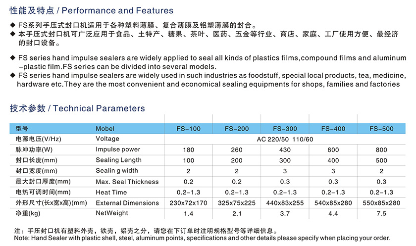 FS-100/200/300手压式封口机